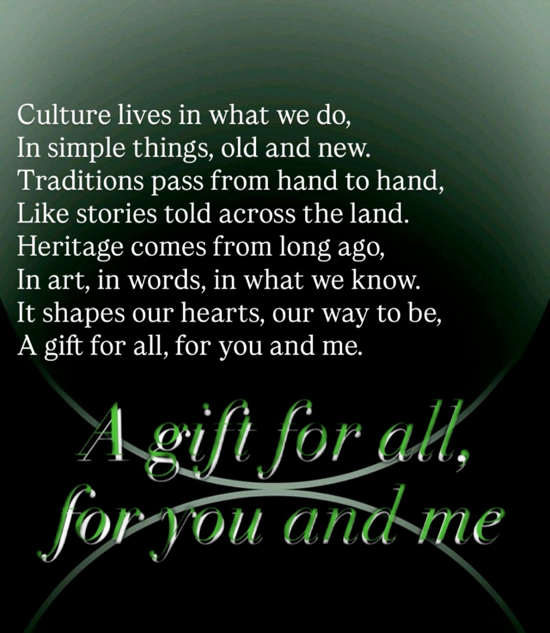 - due poesie in lingua inglese sull’importanza delle tradizioni, della cultura e del patrimonio culturale – alcuni poster e cartoline riguardanti il patrimonio culturale
